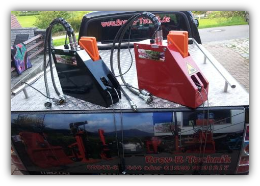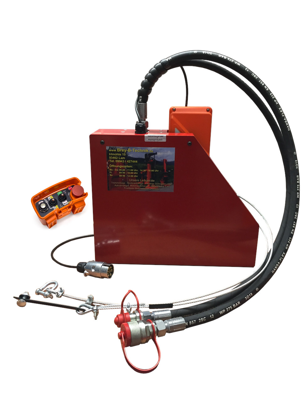 - Hydraulikbox mit montierter Funkfernbedienung, wahlweise E1 PIC mit Druckknopf oder E1 Vetta