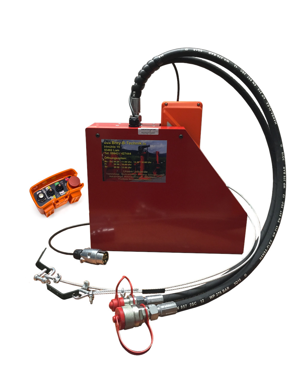 - Hydraulikbox mit montierter Funkfernbedienung, wahlweise E1 PIC mit Druckknopf oder E1 Vetta